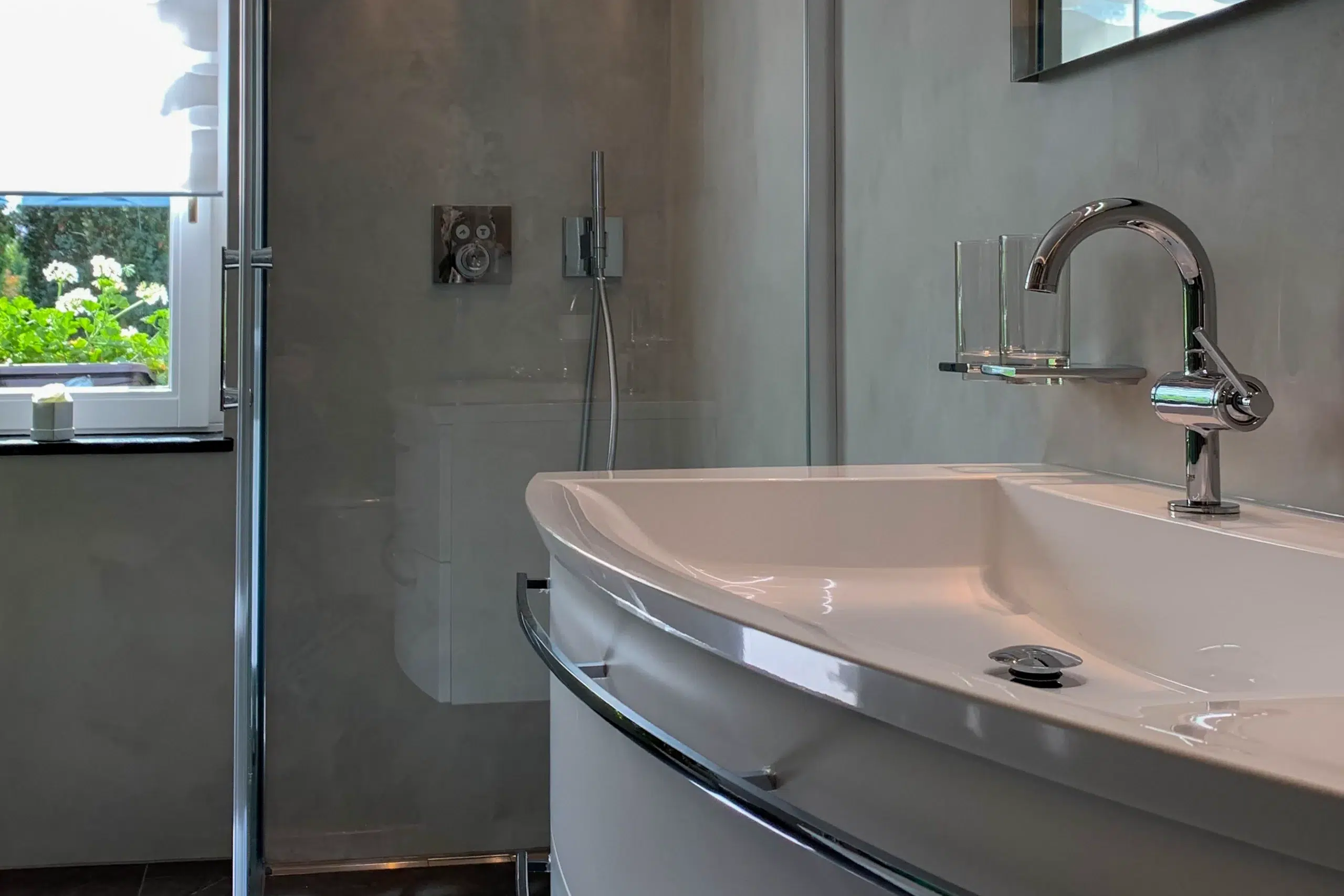 Als zertifizierter Terra Lilia Partner verarbeiten wir das Terra INCON-System für fugenlose Oberflächen in Bad, Wohnraum und auf Böden.